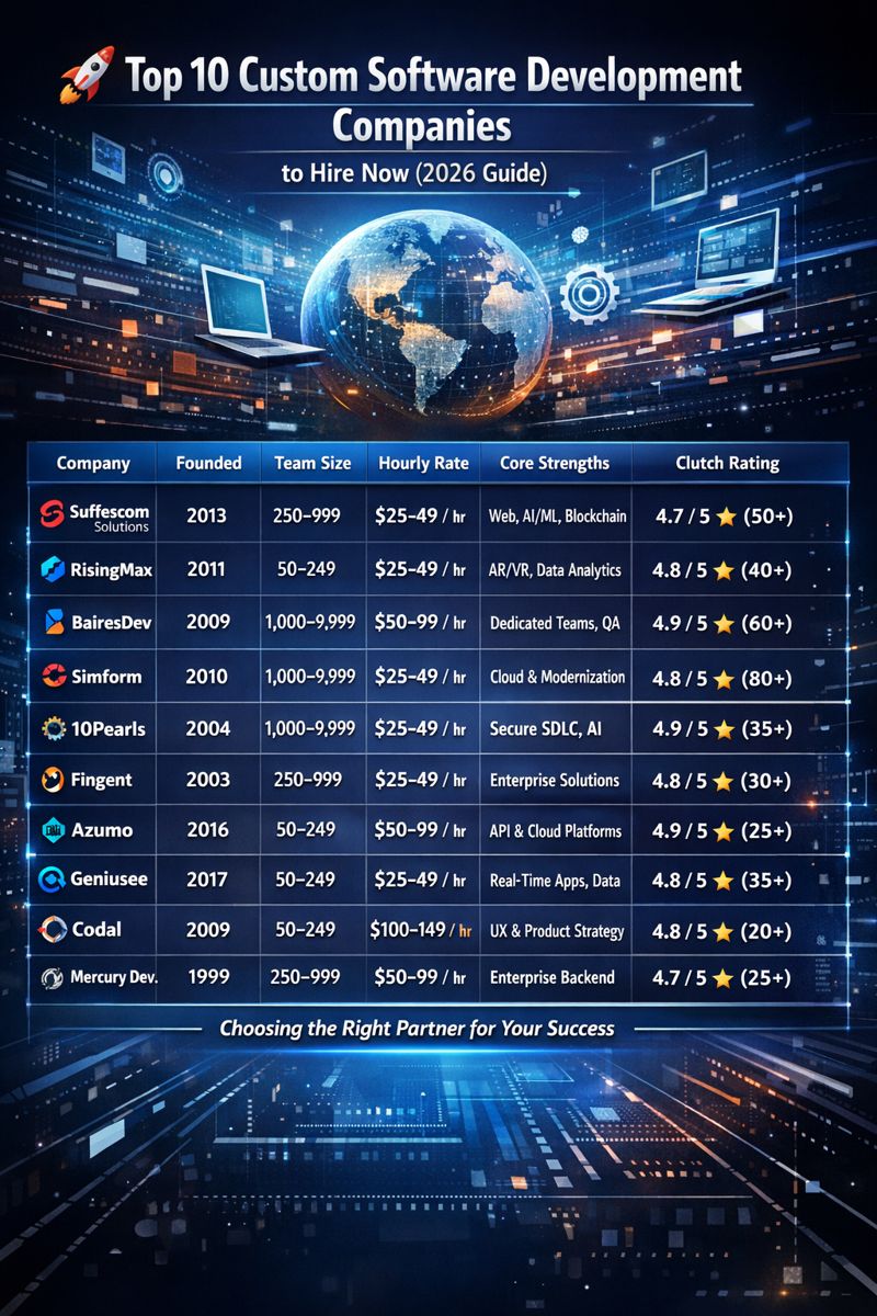 🚀 Top 10 Custom Software Development Companies to Hire Now